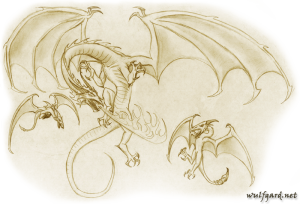 | − | + | [[File:Creature_dragon_vs_wyverns.png|thumb|300px|A dragon fighting a pair of wyverns.]] | |